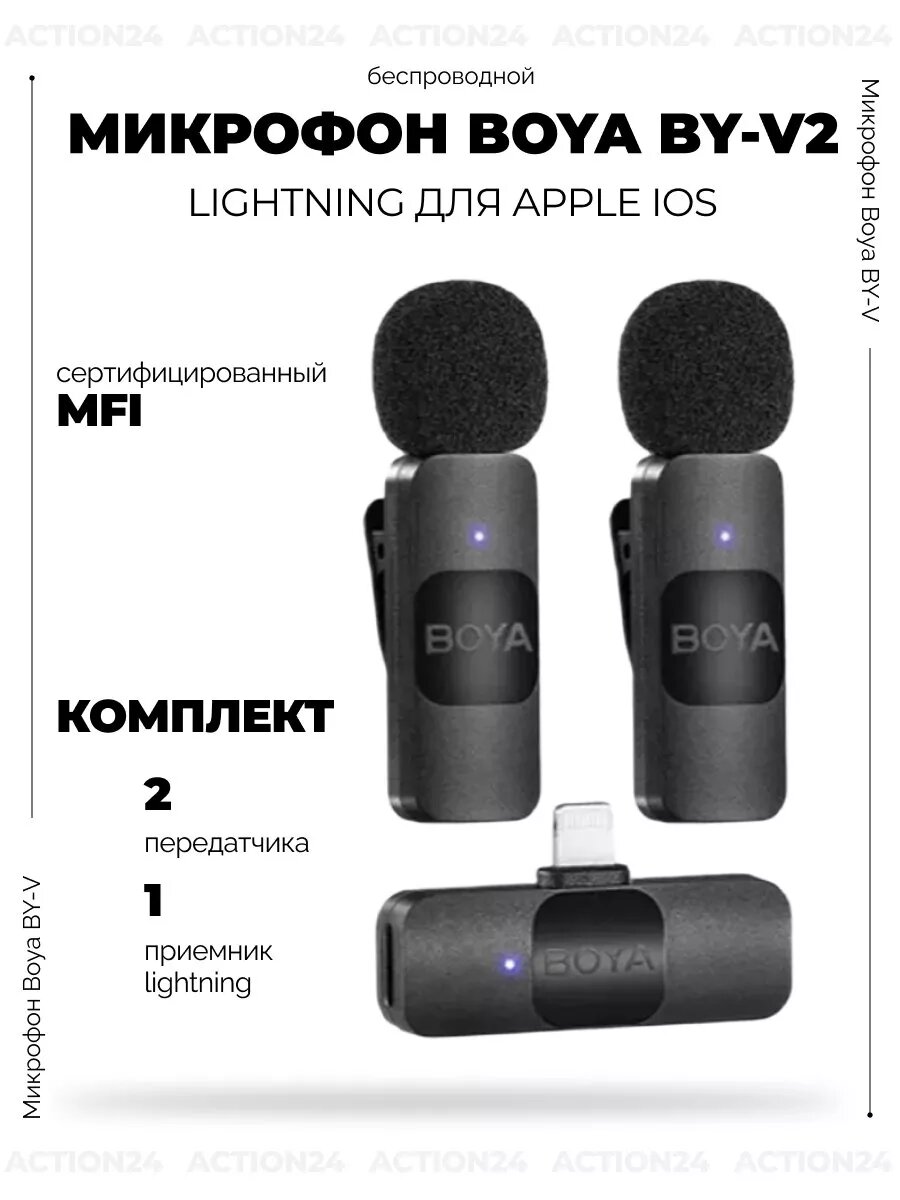 Микрофон петличный BOYA BY-V2,2.4 ГГц, Lightning