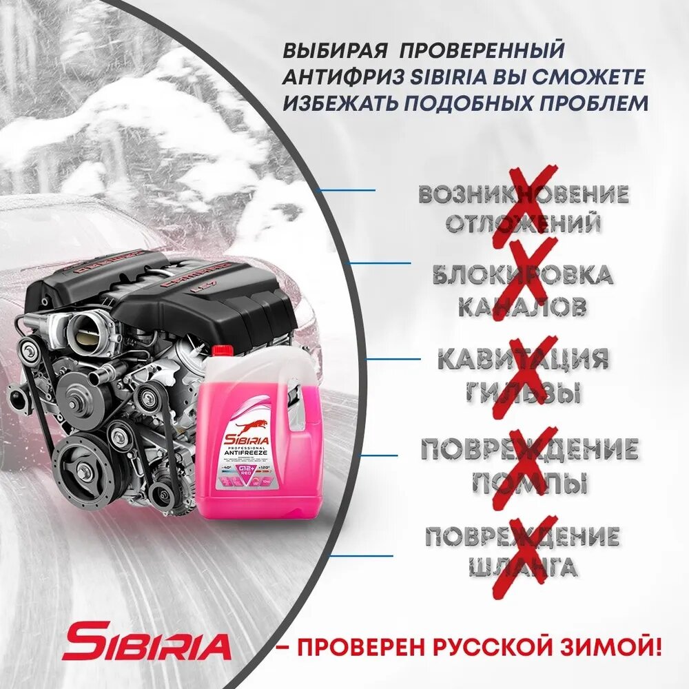 СохранитьАнтифриз, Sibiria, 805601, красный, G12+, -40, 10 л. интересное: