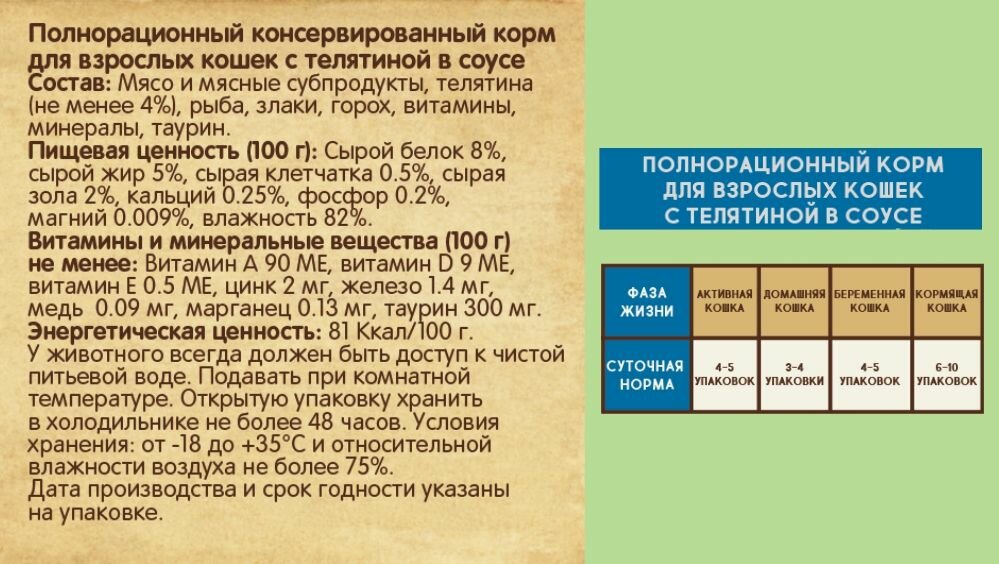 | Особые потребности | для живущих в помещении / для живущих на улице / для здоровья кожи и блеска шерсти |
