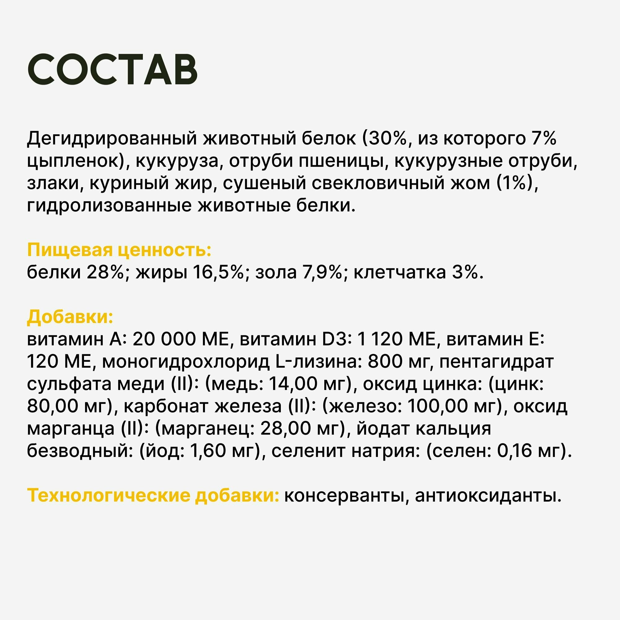 | Класс ингредиентов | премиум / Premium |