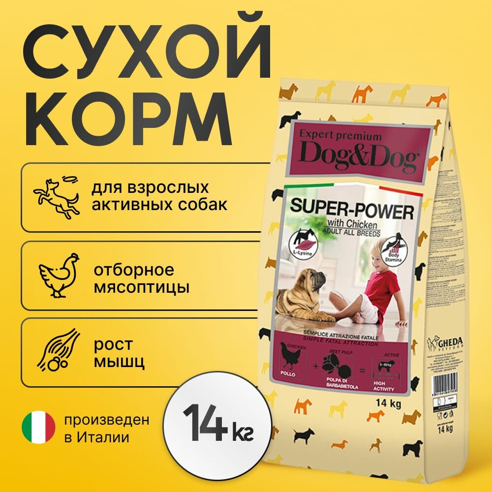 Корм сухой Dog&Dog Super-Power для собак с курицей, 14кг