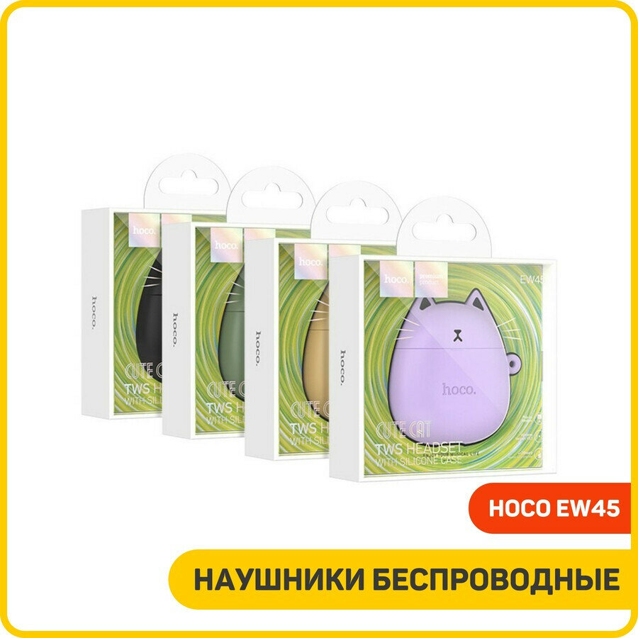 | Дополнительная информация | Стильные и яркие беспроводные наушники EW45 поддерживают беспроводную свять с помощью технологии Bluetooth версии 5.3. В комплект входит силиконовый чехол с ушками и брелком, выполненный в ярком и интересном дизайне. Время автономной работы наушников в режиме ожидания составляет до 200 часов, а в режиме использования - 4 часа. Наушники Hoco идеально подходят для занятий спортом, прогулок или отдыха. Выполнены в 4-х цветах. |
