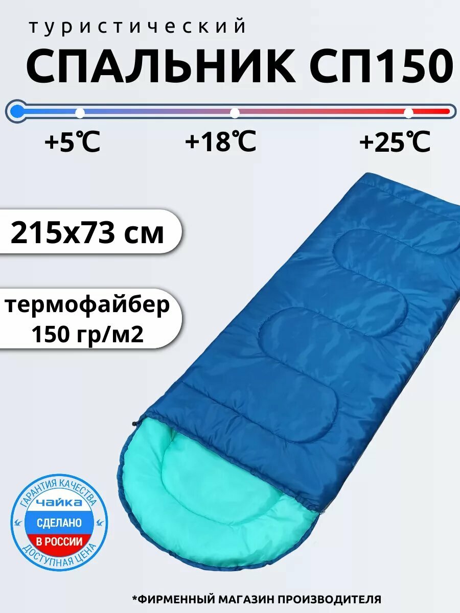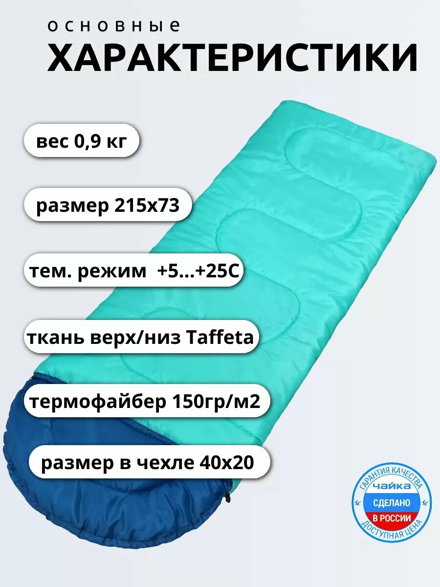 Спальный мешок туристический ЧАЙКА СП150 синий/мята с подголовником