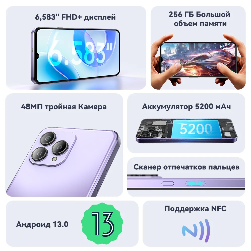 Смартфон Cubot P80, 8 (+8GB расширенный)/256ГБ, Global , Android 13, 6.58 IPS, NFC, 8-ядерный MediaTek MT8788V (12nm), 5200mAh. Purple.