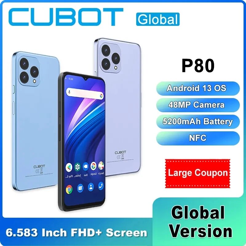 Купить Cubot P80 смартфон, Android 13, 8 ГБ ОЗУ + 256 Гб ПЗУ, экран 6,583 дюйма FHD +, камера 48 МП, 5200 мАч