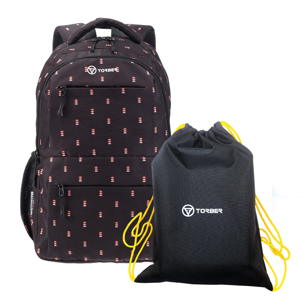 Рюкзак TORBER CLASS X, черный с орнаментом, 45 x 30 x 18 см + Мешок для сменной обуви в подарок! TORBER MR-T2602-22-BLK-M