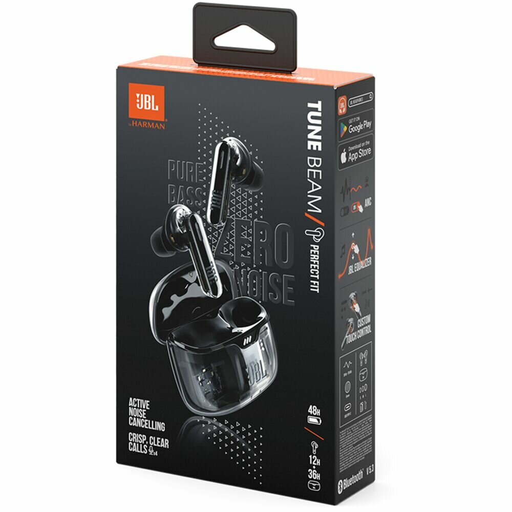 Купить Гарнитура вкладыши JBL Tune Beam Ghost черный беспроводные bluetooth в ушной раковине (JBLTBEAMGBLKAS)