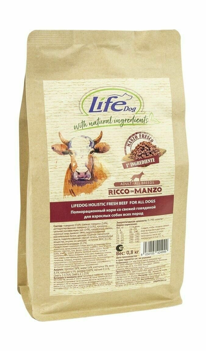 Корм Lifedog Holistic Fresh BEEF 15кг для собак со свежей говядиной интересное: