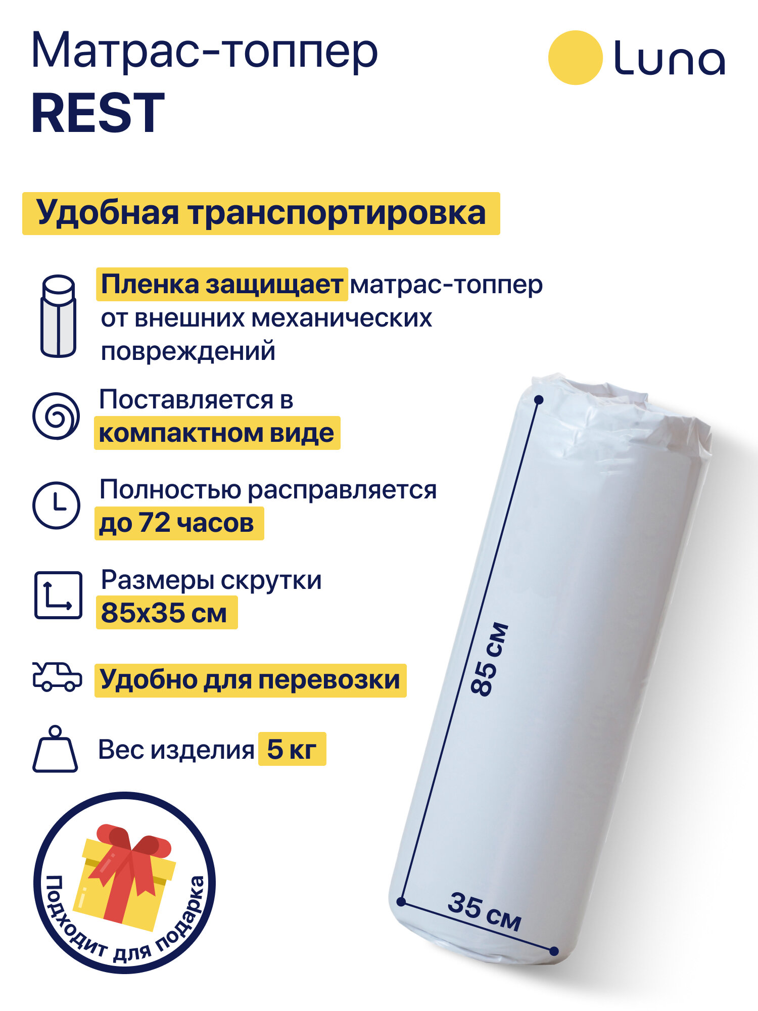СохранитьМатрас-топпер Luna Rest двухсторонний, ортопедический, анатомический 200х200 см, высота 6 см интересное: