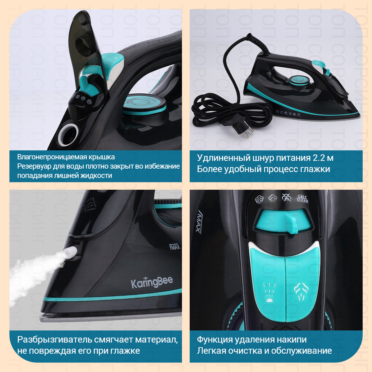 Утюг паровой мощный с отпаривателем KaringBee KB-EI001, черный(ЕАС-сертификат)