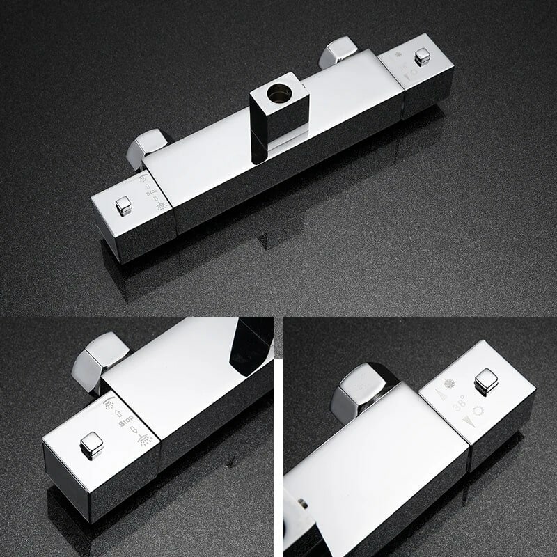 Купить Душевая стойка с термостатом и тропическим душем хромированная с металлическими лейками