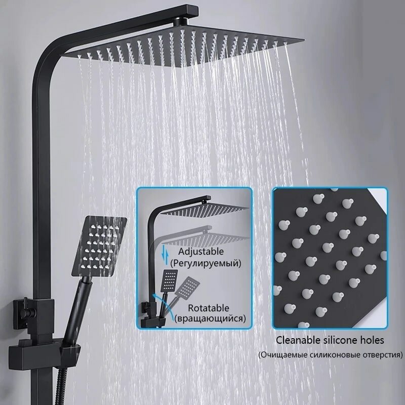 Ниже Вы можете прочитать отзывы на Душевая стойка с термостатом и тропическим душем черная с металлическими лейками, ознакомится с подробными характеристиками, посмотреть интересные обзоры и фотографии на Душевая стойка с термостатом и тропическим душем черная с металлическими лейками.