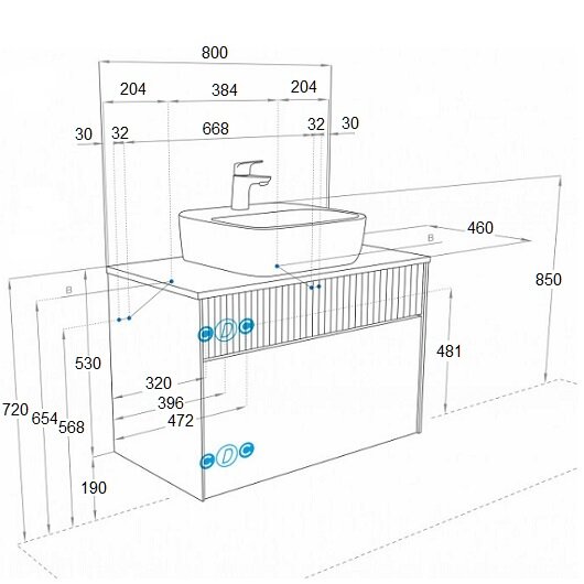 Тумба под раковину AQUATON Марбл 80 800х460х530 подвесная, Слэйт/Белый матовый 1A276201MH4C0