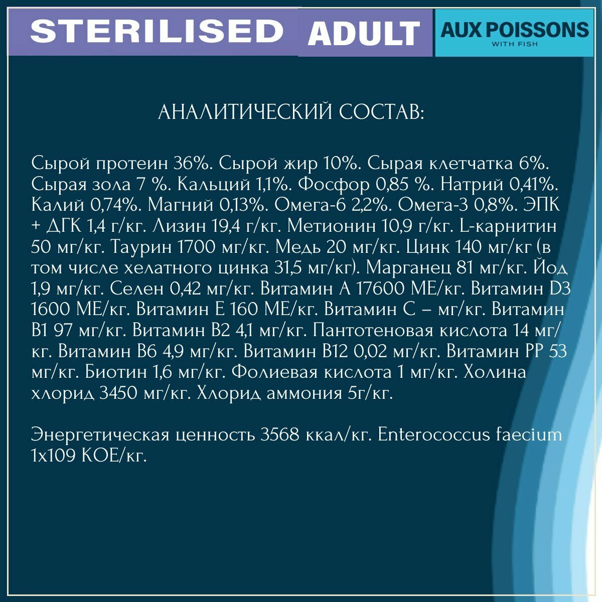 | Особые потребности | для вывода шерсти / для здоровья кожи и блеска шерсти / для здоровья костей и суставов / для снижения запаха стула / при чувствительном пищеварении / профилактика МКБ |