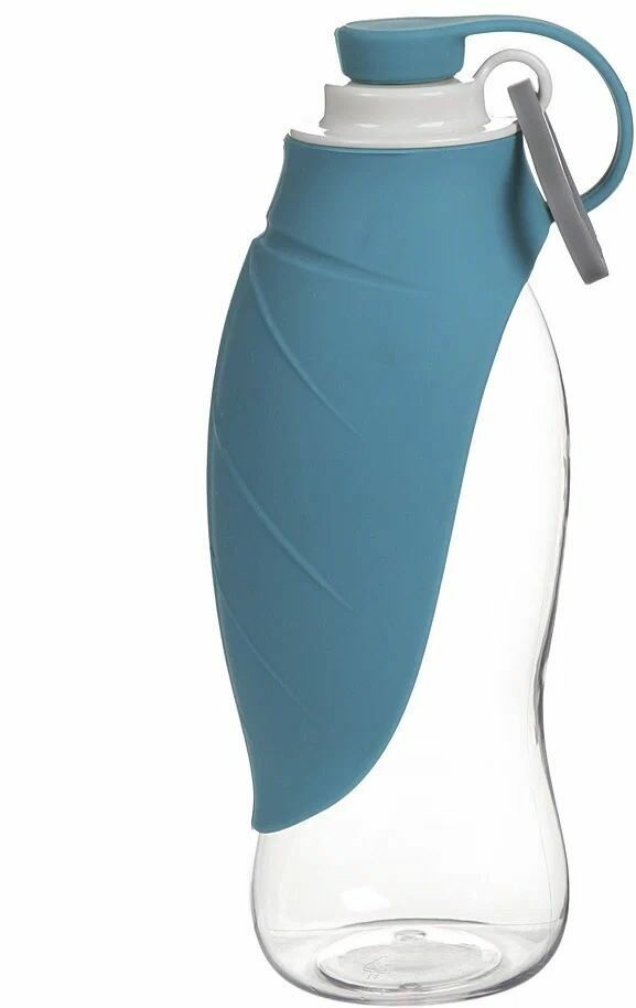 Бутылка поилка для домашних животных переносная 500 мл с карабином, голубая