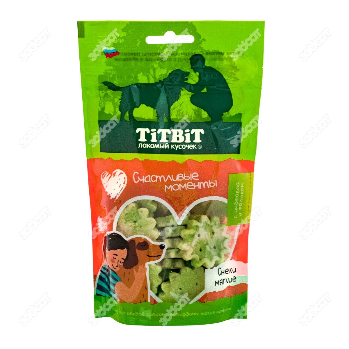 Лакомство TiTBiT Счастливые моменты снеки мягкие с индейкой и яблоком для собак (100 г)