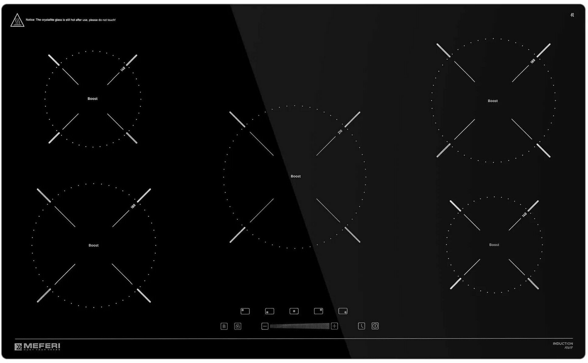 Индукционная варочная панель MEFERI MIH905BK POWER, 90 см, 5 конфорок, черная