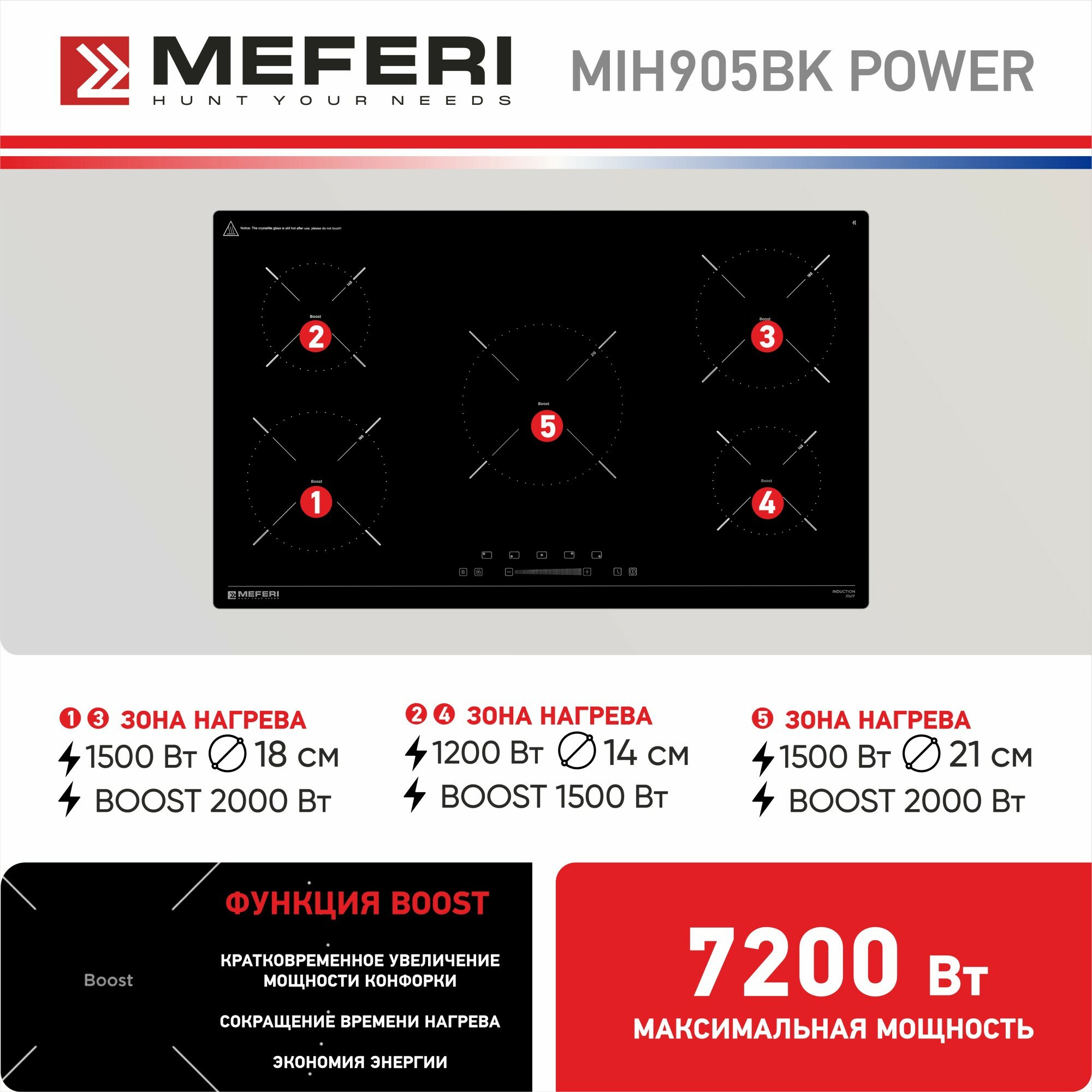 Варочная панель MEFERI Индукционная MIH905BK POWER интересное: