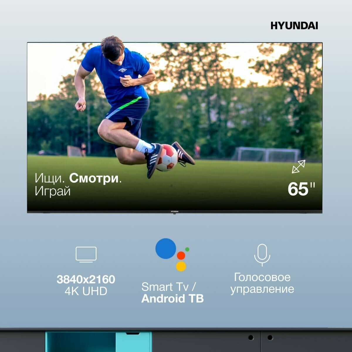 Телевизор Hyundai H-LED65OBU7700 Android TV 4K UHD разрешение 3840x2160 65 частота обновления 120 HDR 900 кд/м2 178 градусов 1500:1