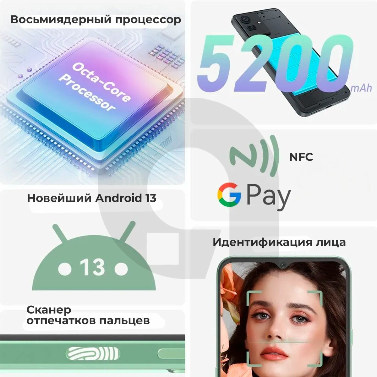 Смартфон Cubot NOTE 50, 16 NFC ОЗУ (8 ГБ + 8 ГБ ренренной), 256 ГБ ПЗУ,5200, 4G, камера 50 МП, 6,56 дюймовый, 16GB 256GB, Cubot, Note 50, Смартфон, Зеленый, 16ГБ, 256ГБ, global, новый
