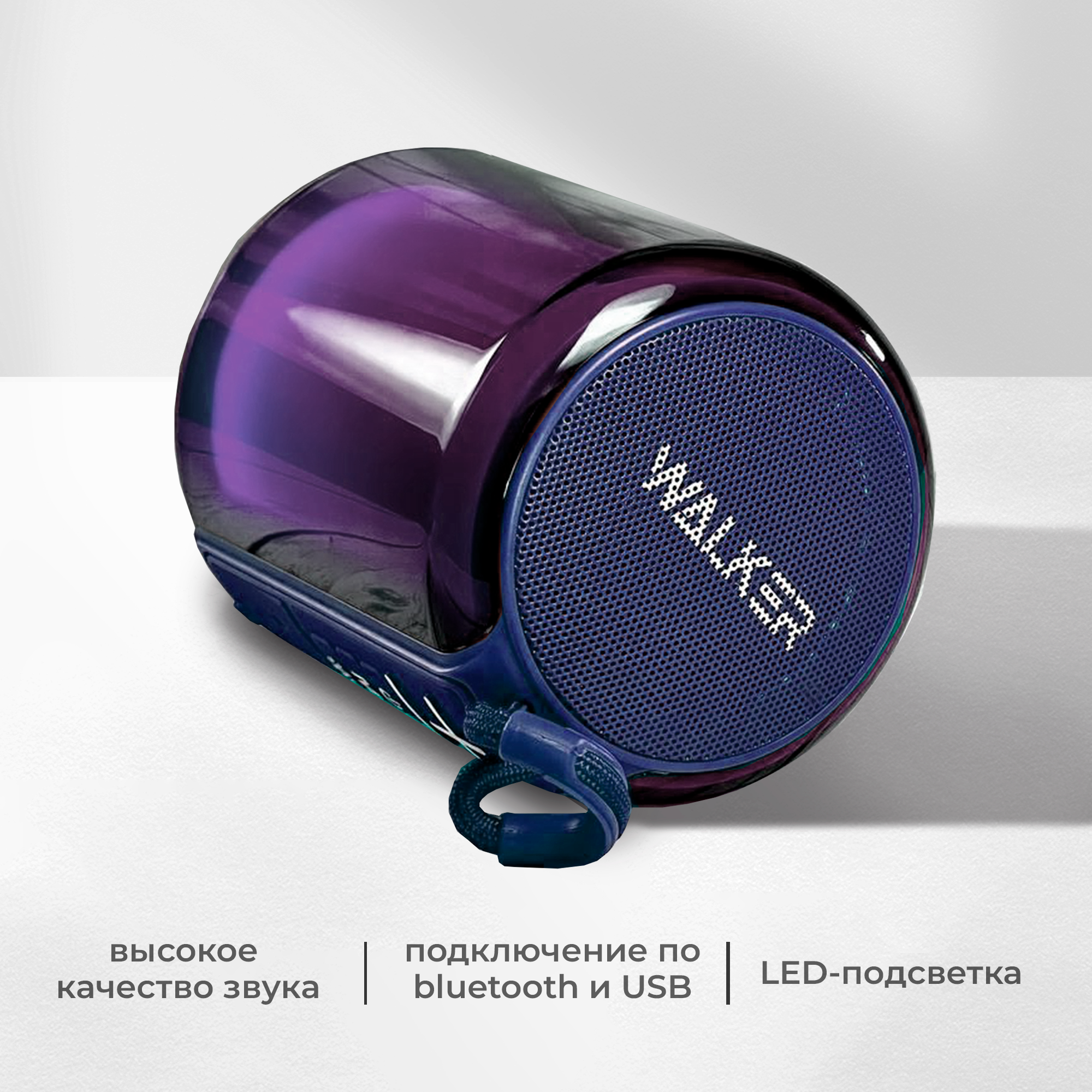 Портативная колонка, WALKER, WSP-125, 5Вт, RGB-подсветка, TWS, Bluetooth 5.3, колонка блютуз, колонка jbl, jbl колонка, bluetooth колонка, фиолетовая