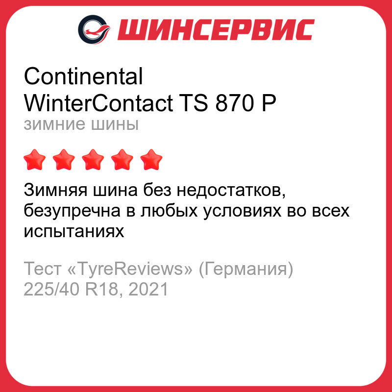 Ниже Вы можете прочитать отзывы на Зимняя нешипованная шина Continental WinterContact TS 870 P 265/40 R20 104V, ознакомится с подробными характеристиками, посмотреть интересные обзоры и фотографии на Зимняя нешипованная шина Continental WinterContact TS 870 P 265/40 R20 104V.