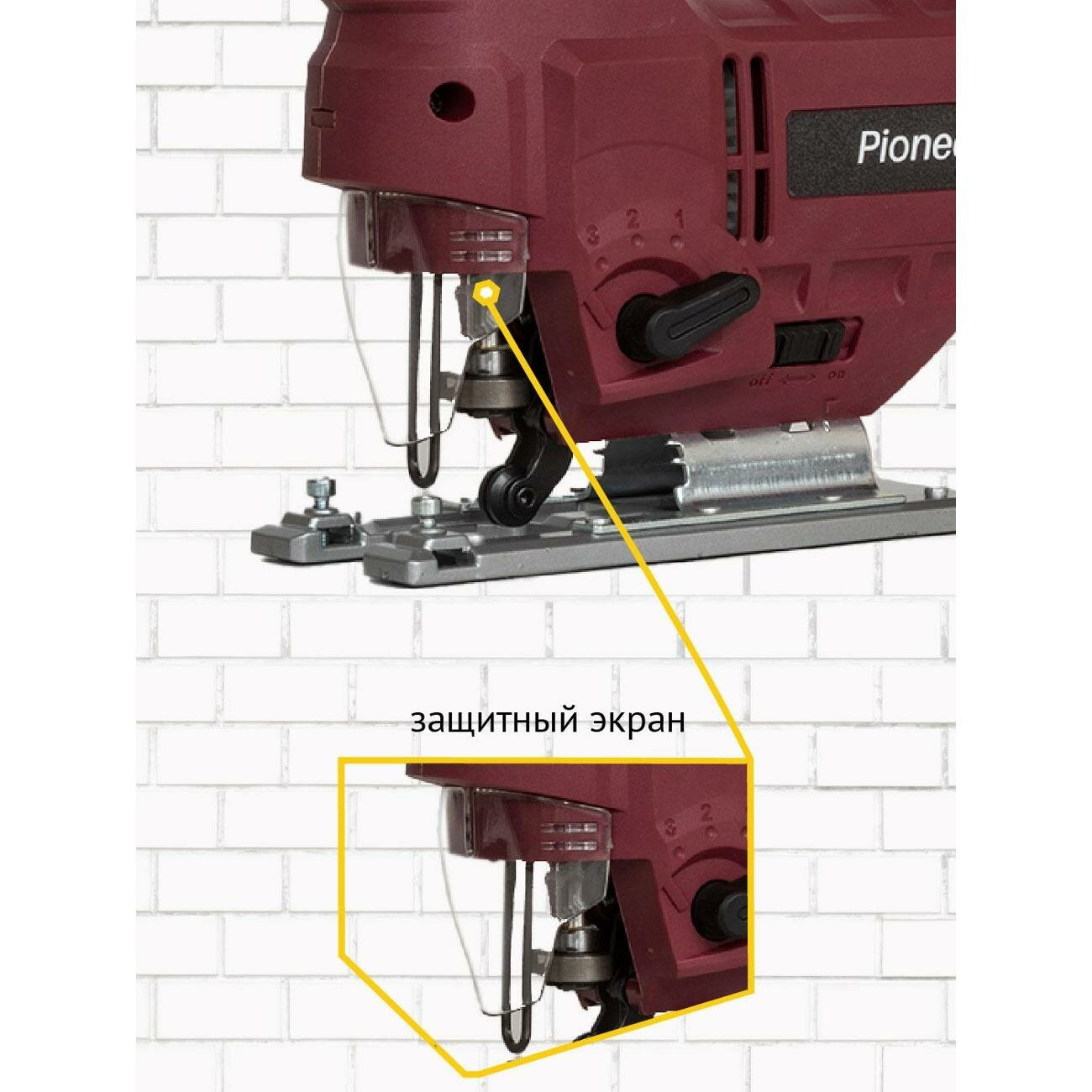 Лобзик электрический Pioneer JS-M900-01PSL с щеточным двигателем и лазерным указателем, возможность подключения пылесоса, 4 режима, 6 скоростей