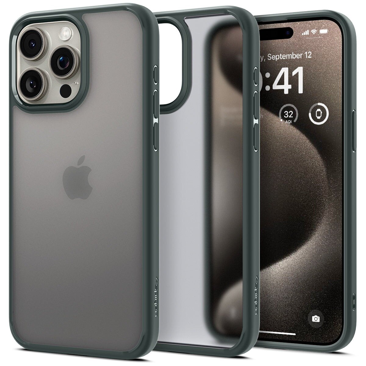 Чехол Spigen на Apple iPhone 15 Pro (ACS06710) Ultra Hybrid / Спиген чехол для Айфон 15 Про накладка, противоударный, с защитой камеры, зеленый