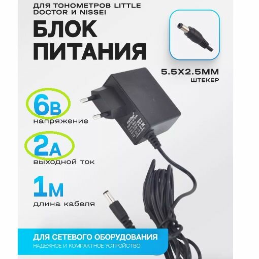 Зарядное устройство для тонометров LITTLE DOCTOR и NISSEI 6V/2A (5.5. x 2.5 мм) интересное: