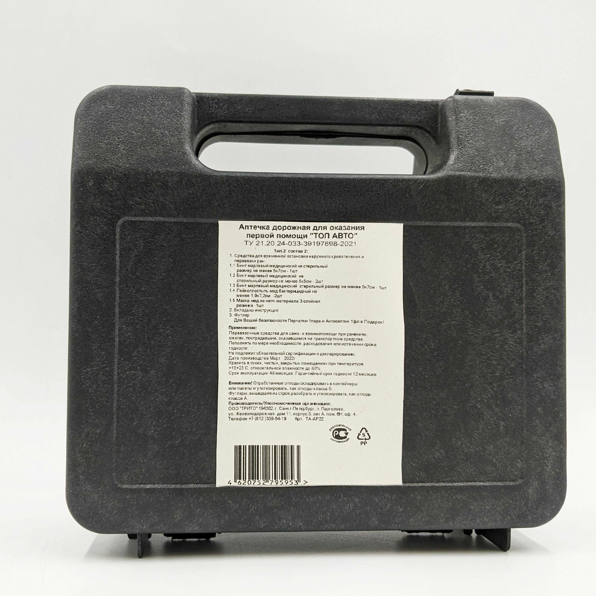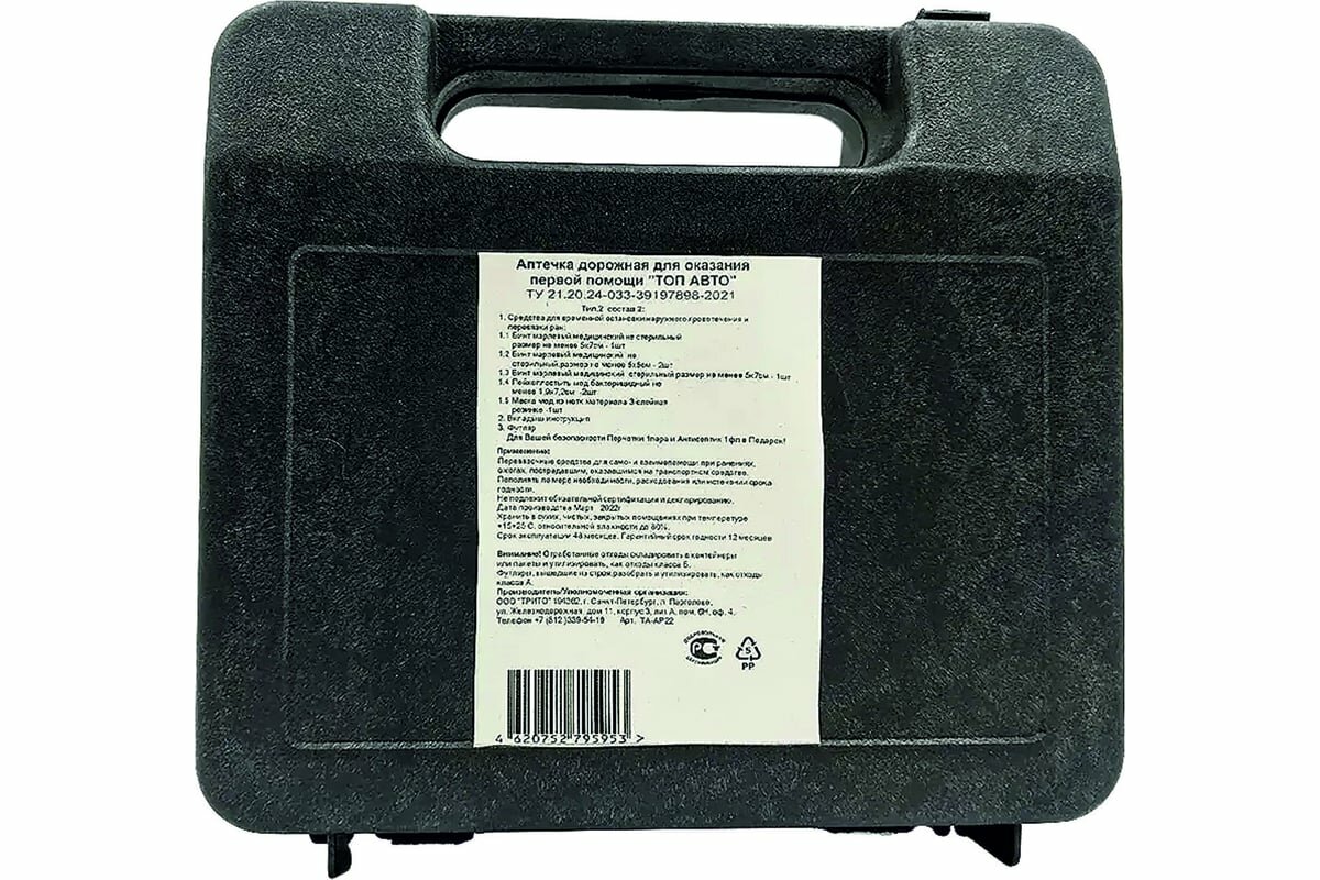 Аптечка автомобильная, TOP AUTO. для оказания первой помощи по ТУ тип 2 состав 2, 8пр, пластик, TA-AP22 интересное: