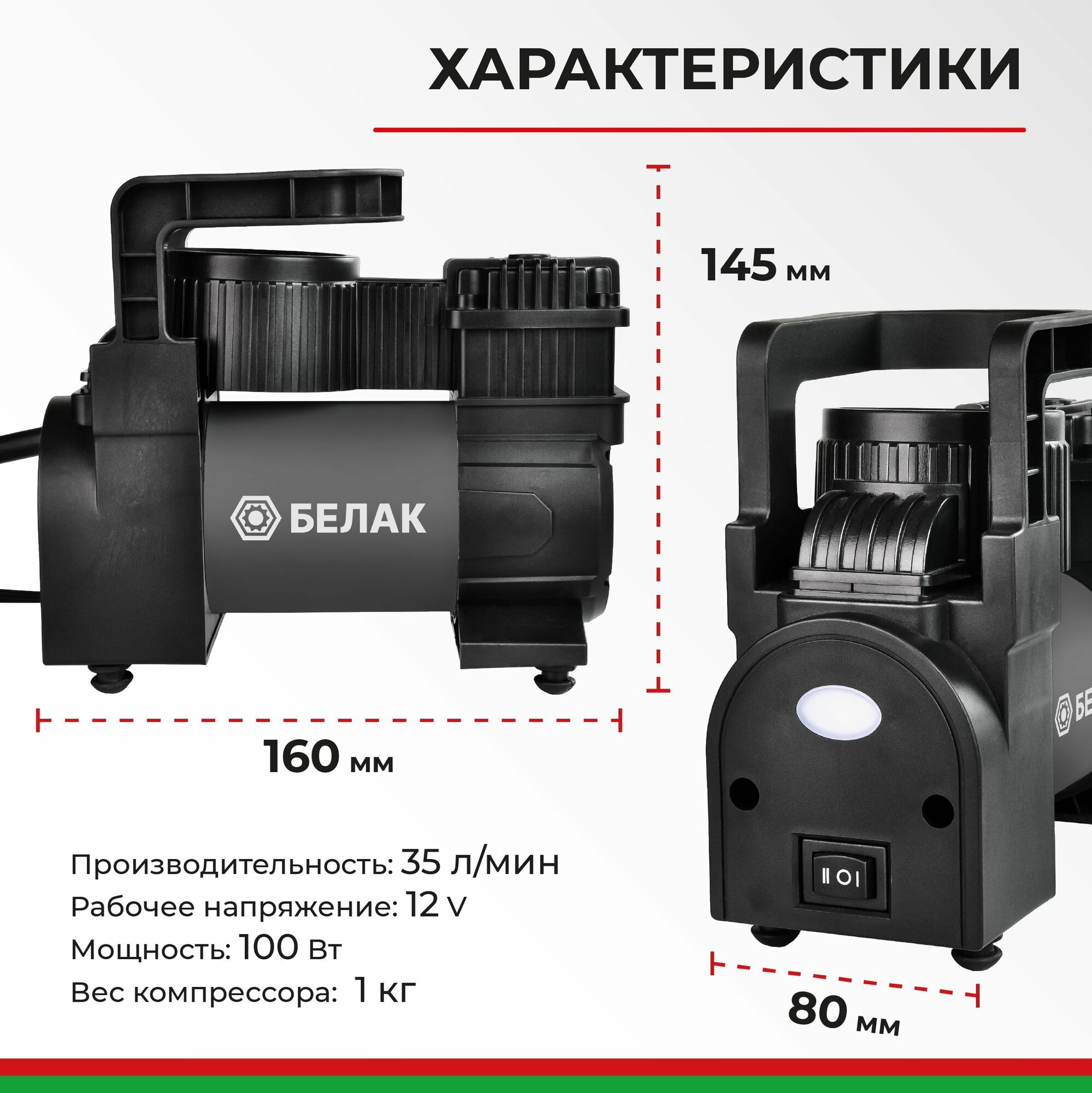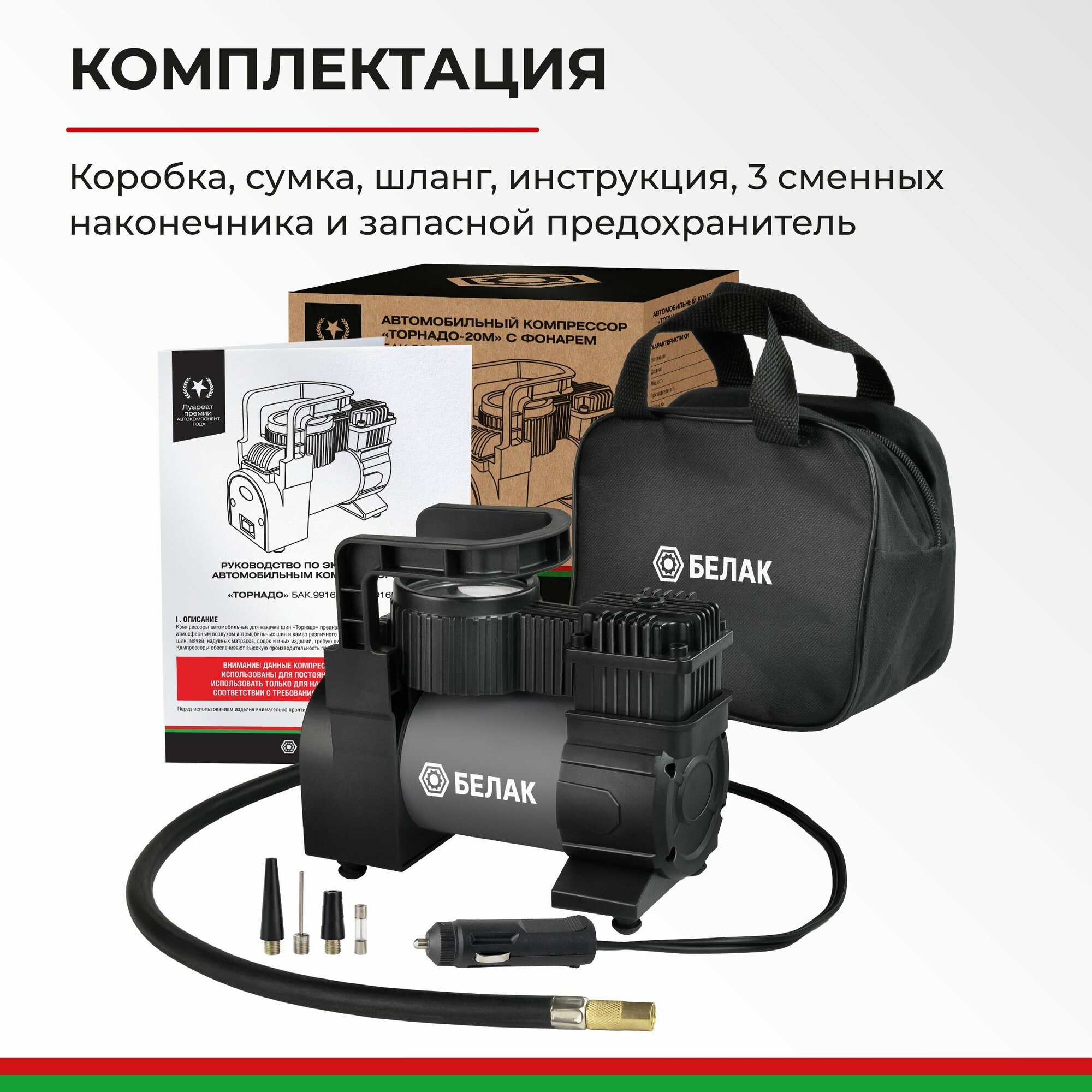Компрессор насос автомобильный с фонарем БелАК "Торнадо - 20М" 35л/мин БАК.99164