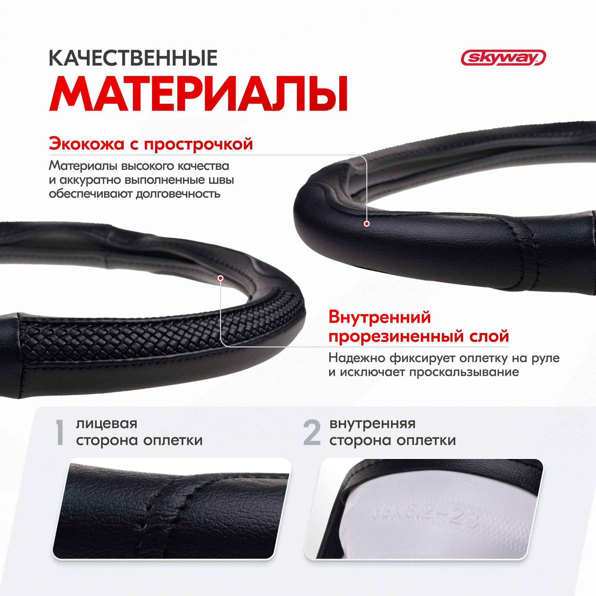Оплетка для руля SKYWAY Modern-7 37/38/39см экокожа, M, S01102143