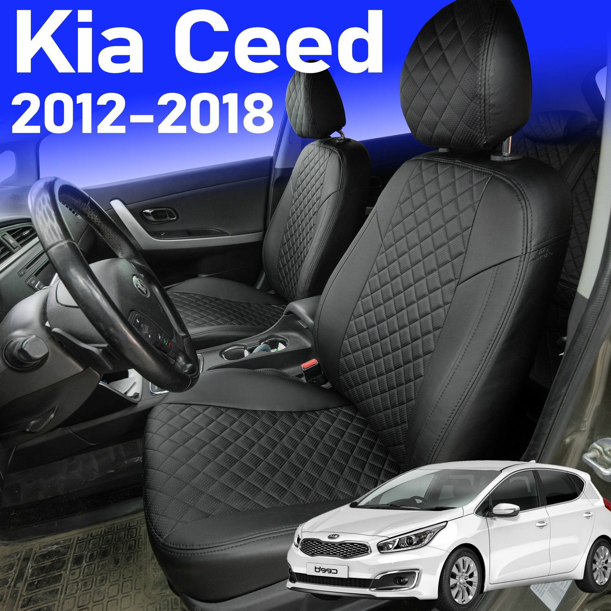 Чехлы на Киа Сид 2, 5-ти дверка 2012-2018. Комплект авточехлов на сиденья KIA Ceed 2 Hb/Wag 5-ти дв. с 2012 2013 2014 2015 2016 2017 2018г. Цвет черный, нить белая.