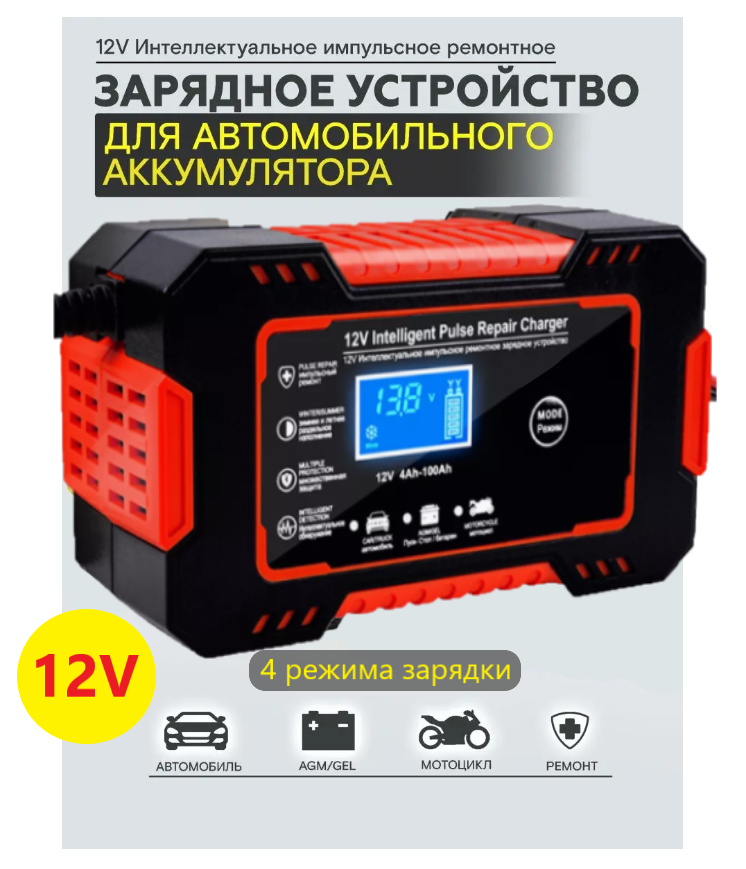 Купить Автоматическое зарядное устройство 12В с функцией импульсного восстановления и ремонта / Red