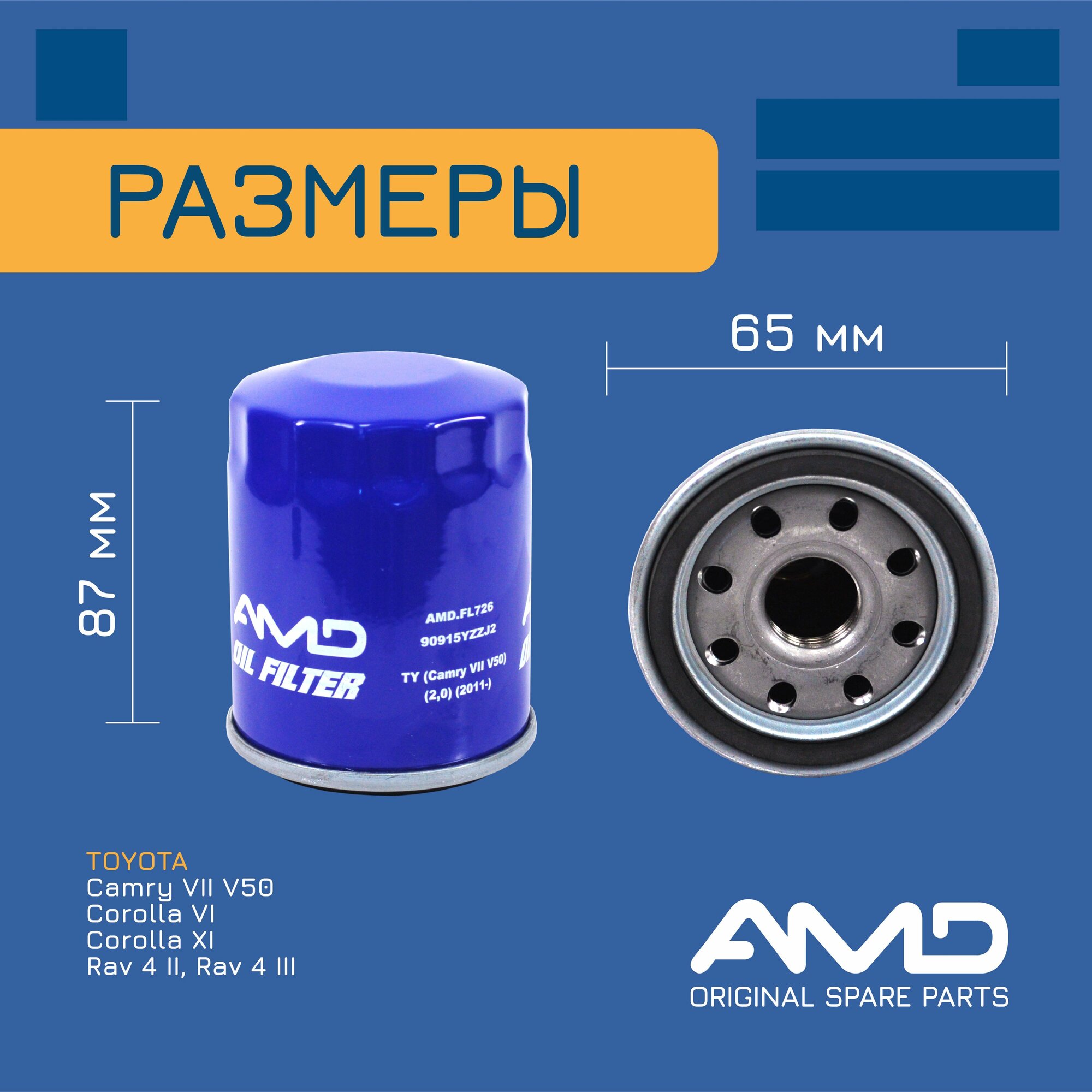Фильтр масляный 90915YZZJ2 AMD.FL726 для TOYOTA Camry VII V50 2,0 2011- интересное: