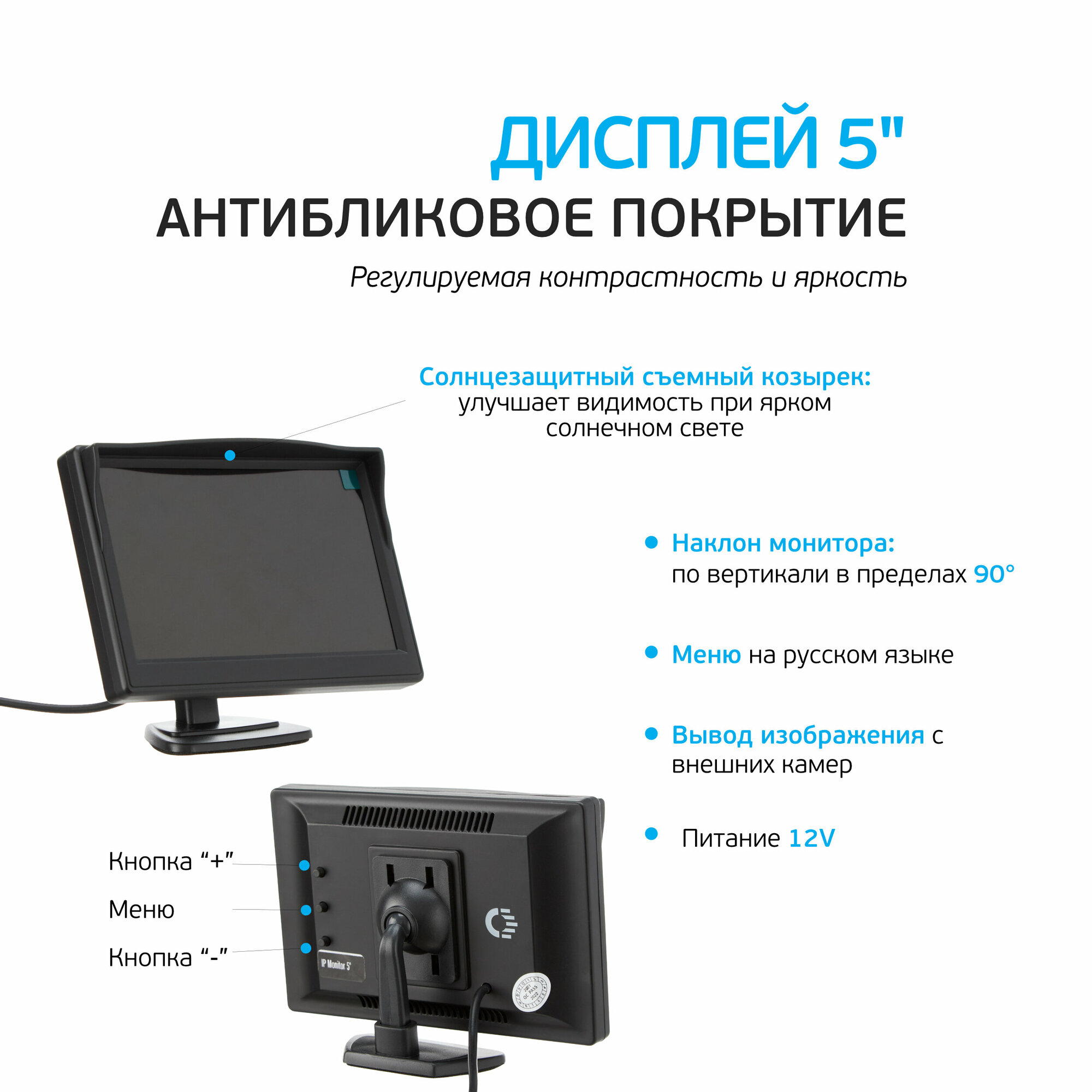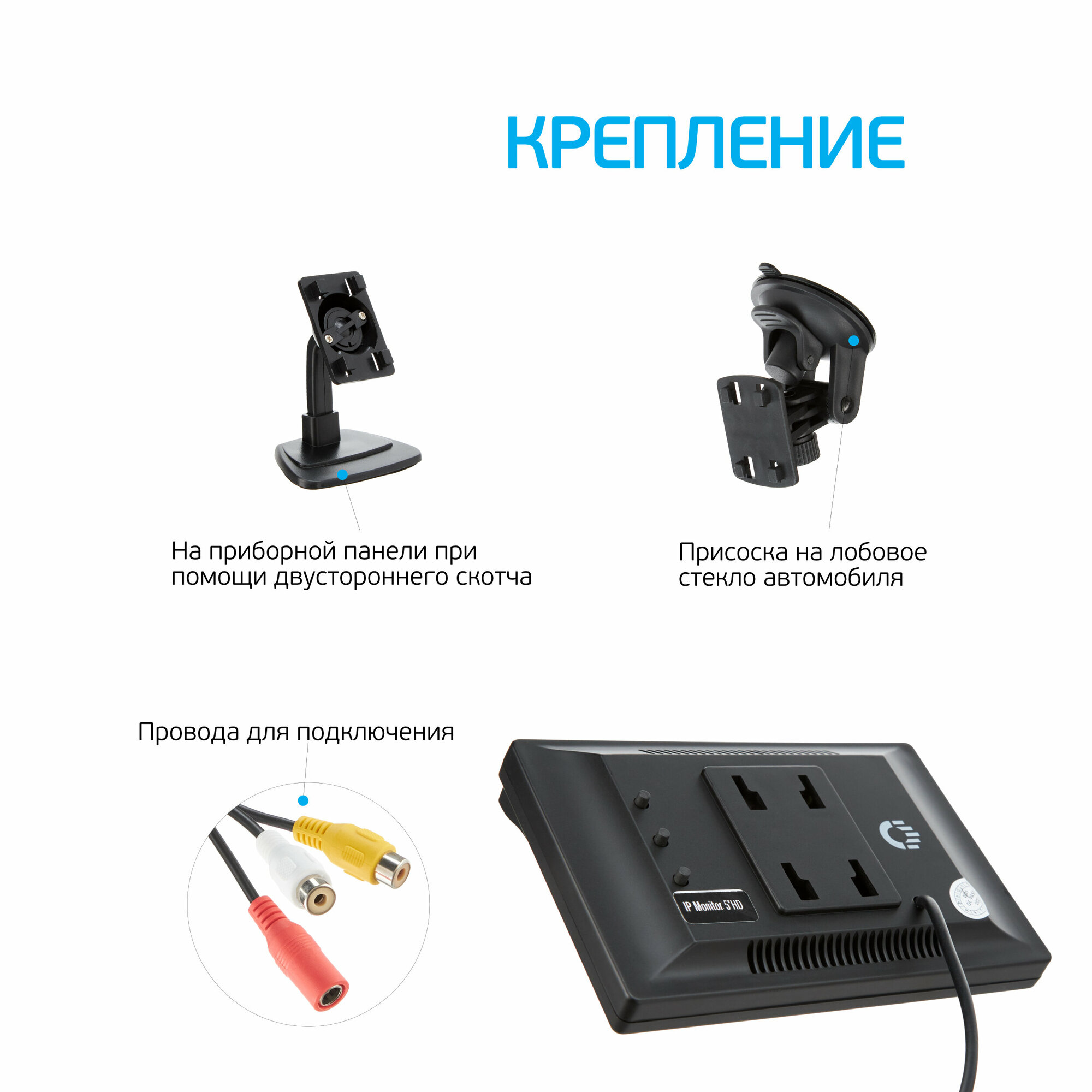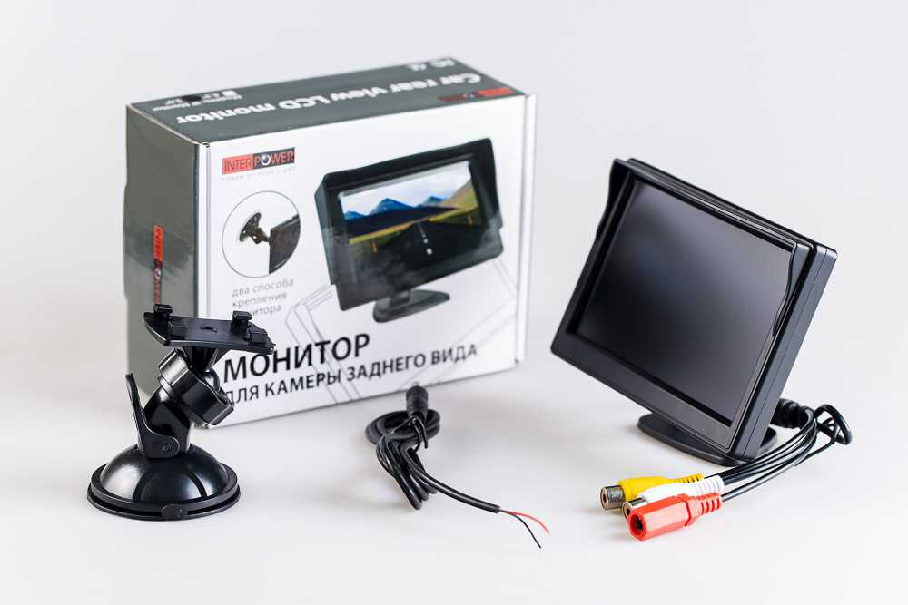 Монитор автомобильный Interpower 5" HD, для камер, наклонный механизм, на лобовое, на панель, универсальный