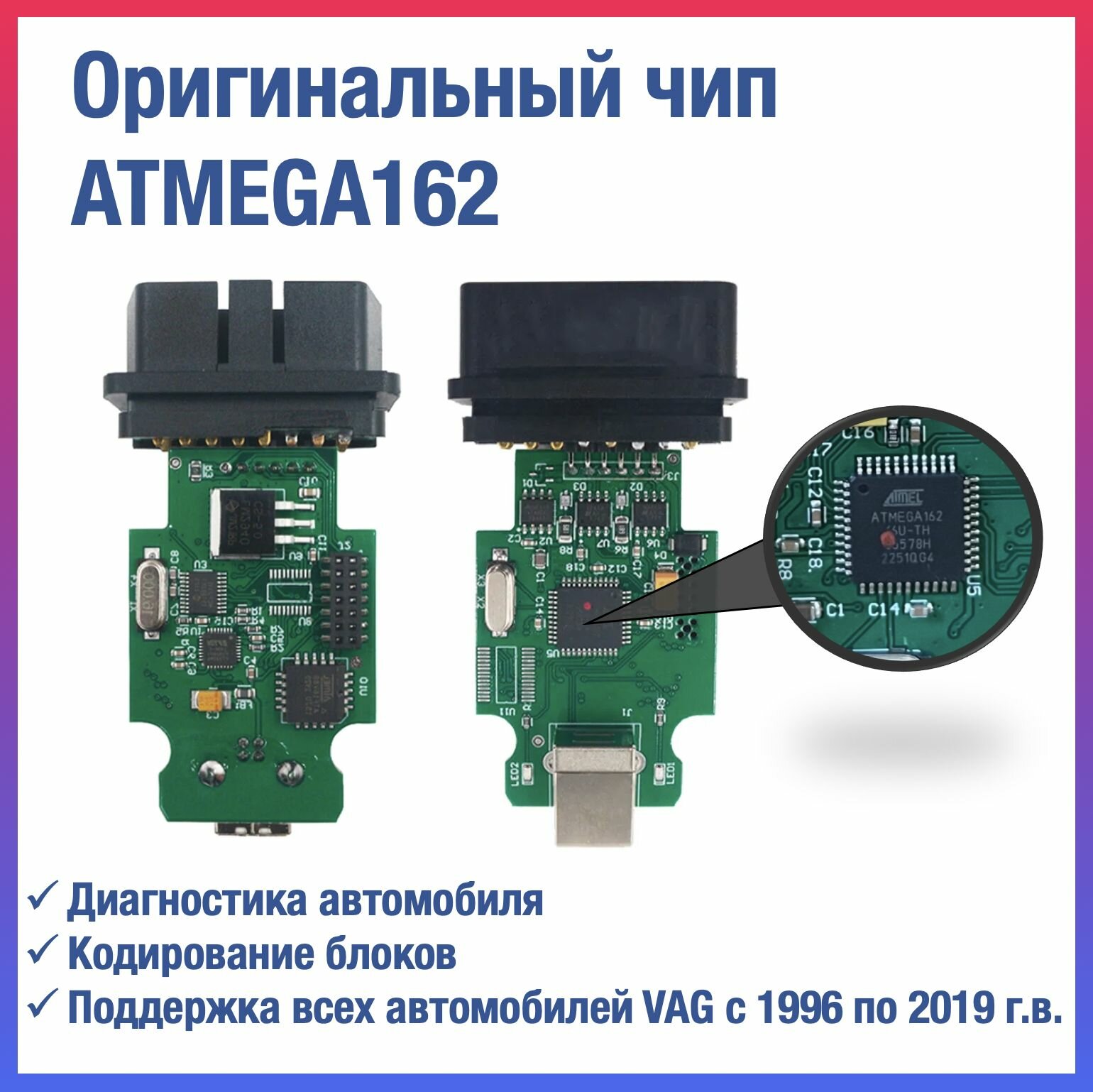 Купить Диагностический сканер для VCDS и Вася, диагностика VAG, VAG-COM для Volkswagen/Skoda/Audi c 1998 по 2019 г.в., HEX V2 OBD2 оригинальный чип ATMEGA162
