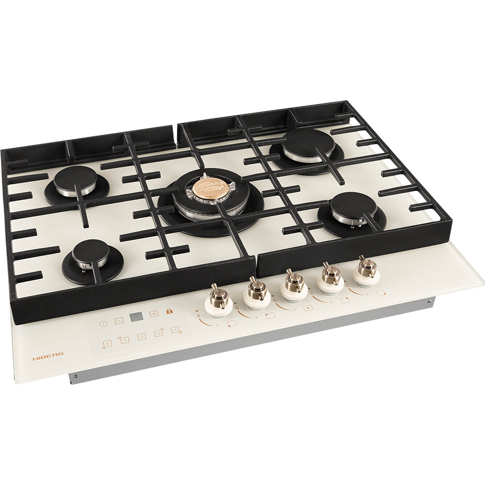 Встраиваемая газовая варочная поверхность HIBERG VM 7155 Y из закаленного стекла в бежевом цвете
