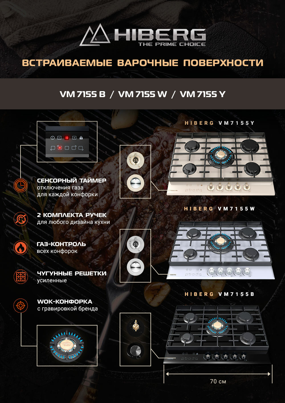Встраиваемая газовая панель HIBERG VM 7155 B