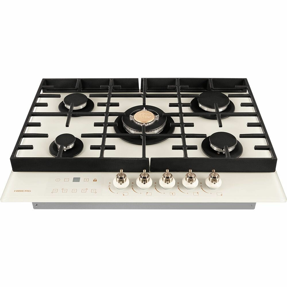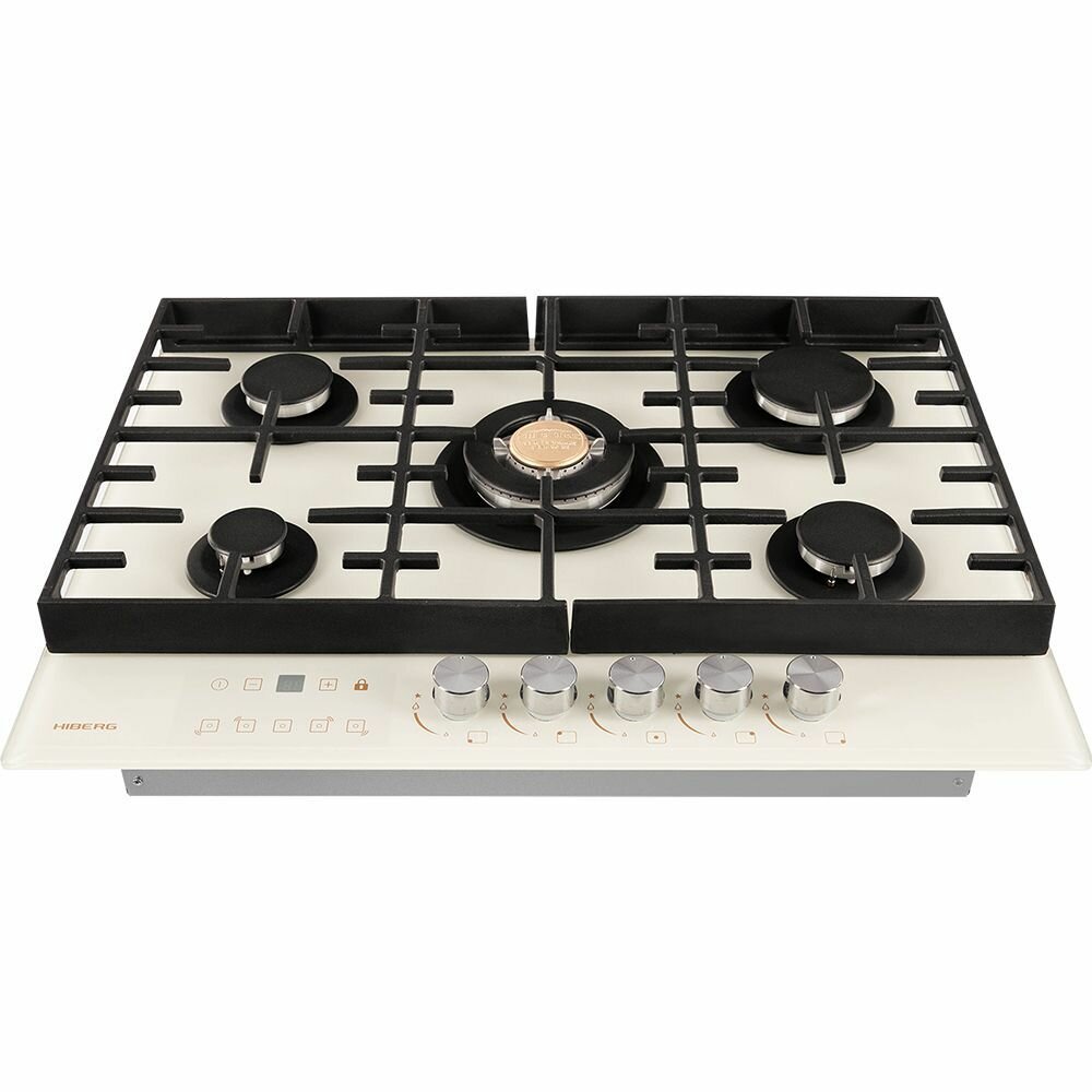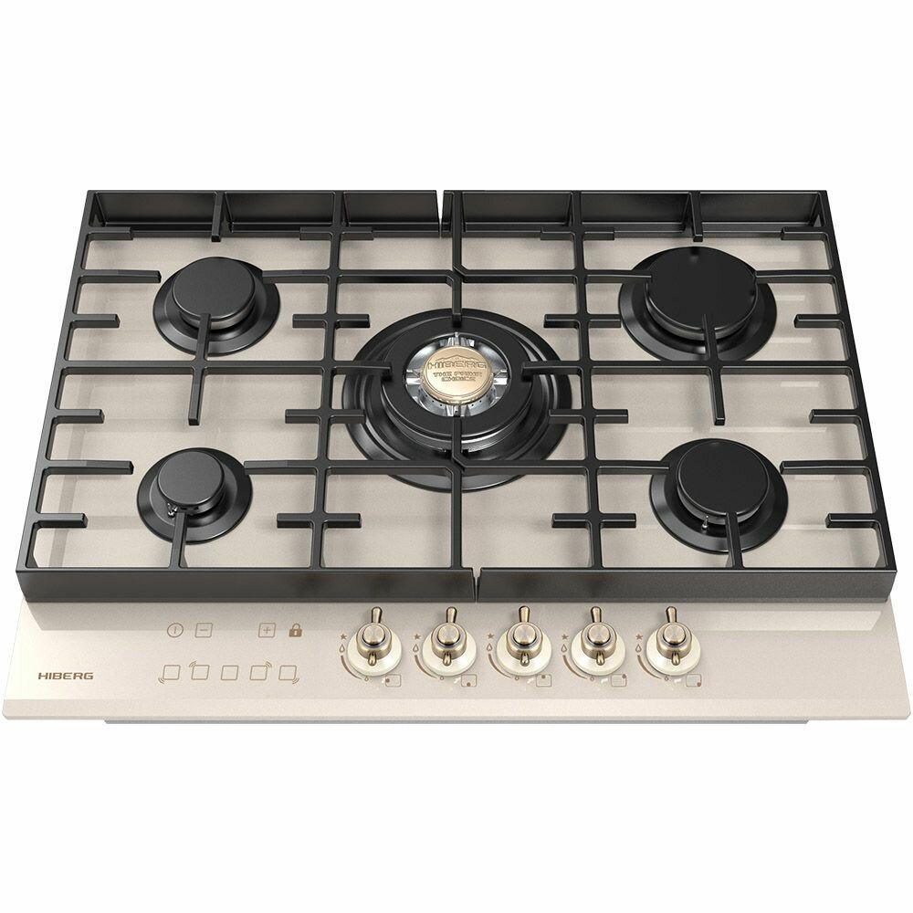 Встраиваемая газовая варочная поверхность HIBERG VM 7155 Y из закаленного стекла в бежевом цвете