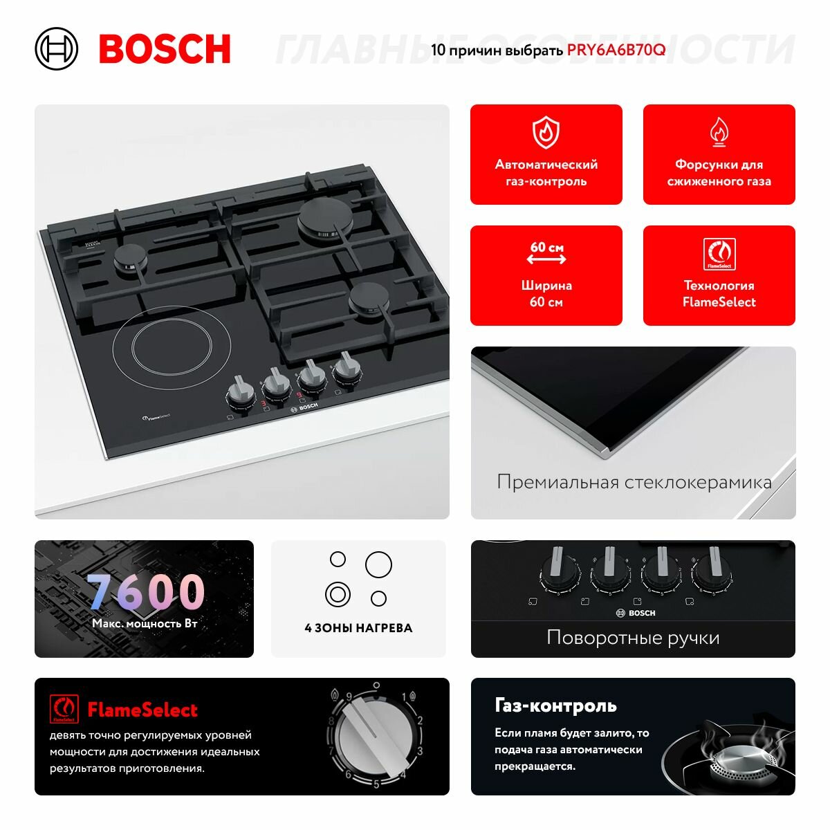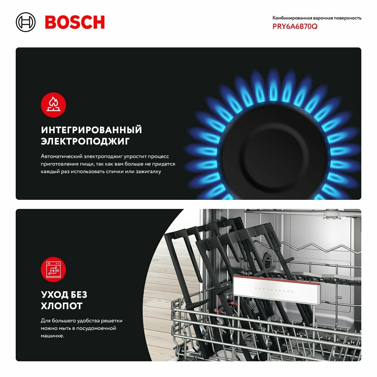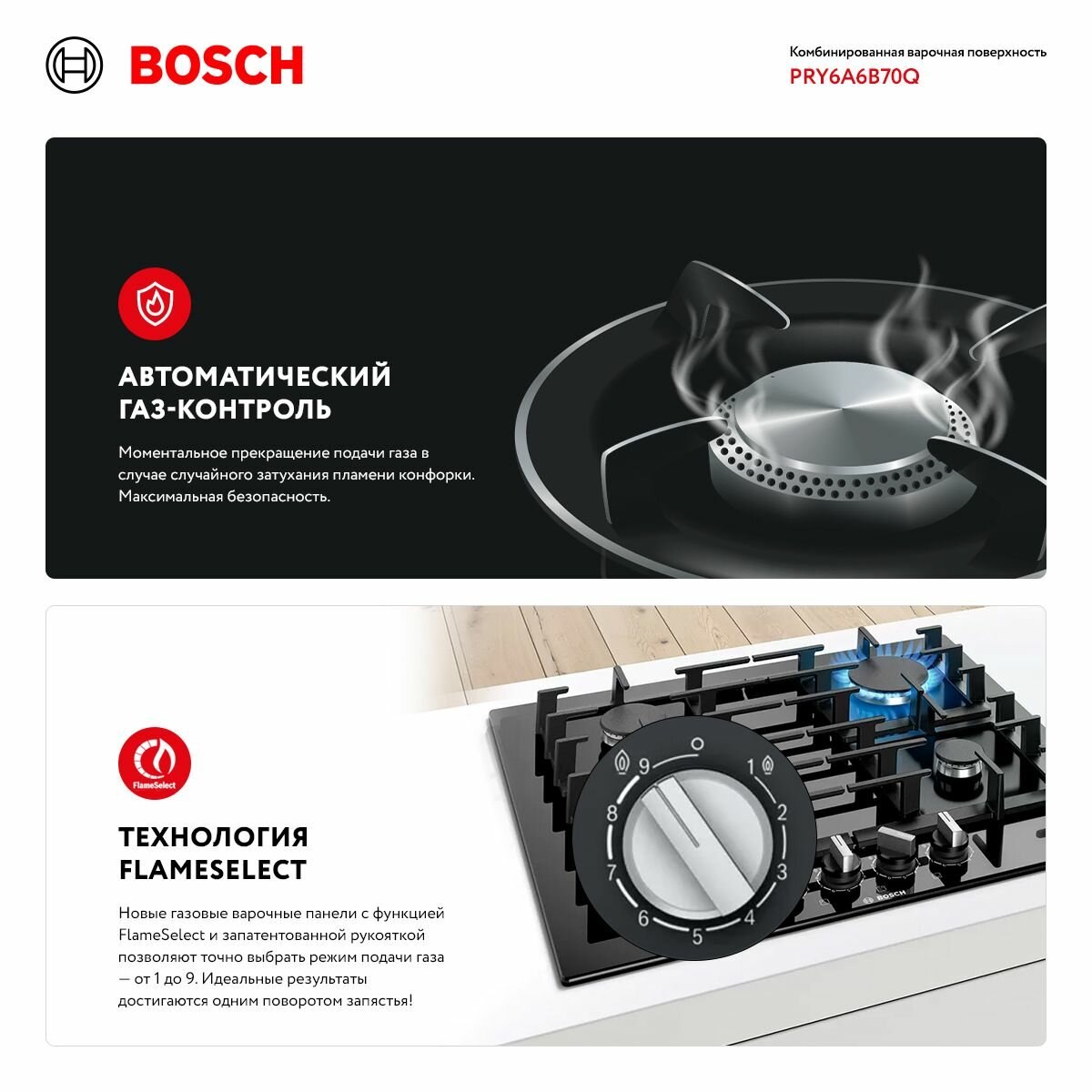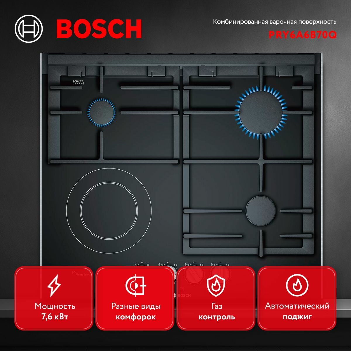 Варочная панель комбинированная Bosch PRY6A6B70Q интересное: