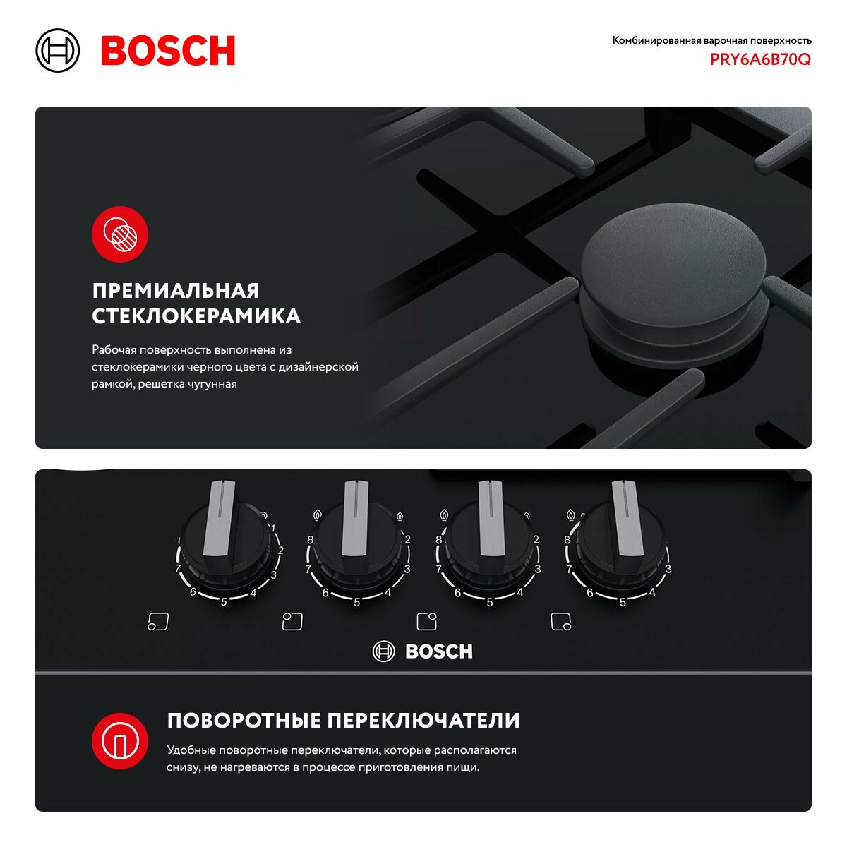 Ниже Вы можете прочитать отзывы на Варочная панель комбинированная Bosch PRY6A6B70Q, ознакомится с подробными характеристиками, посмотреть интересные обзоры и фотографии на Варочная панель комбинированная Bosch PRY6A6B70Q.