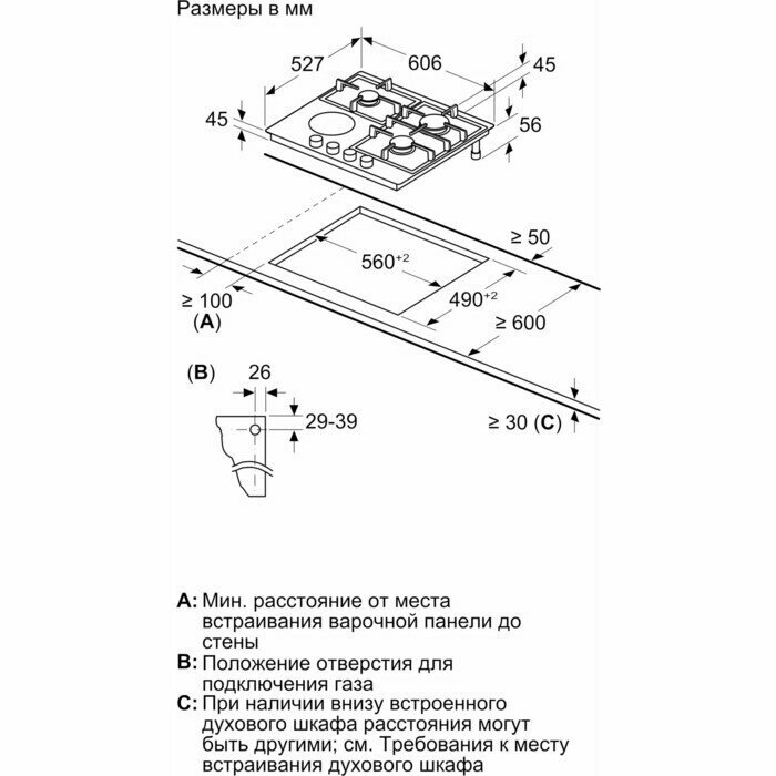| Ширина для встраивания | 56 см |