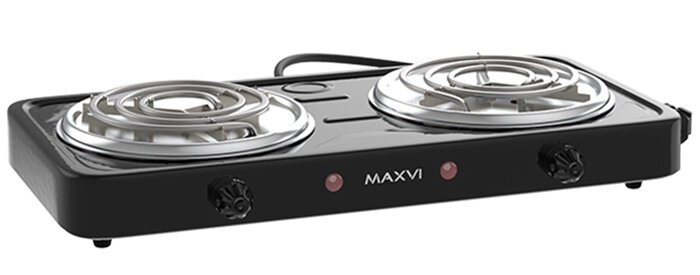Настольная плитка Maxvi HE201 (2-комфорки электрическая) (черный)