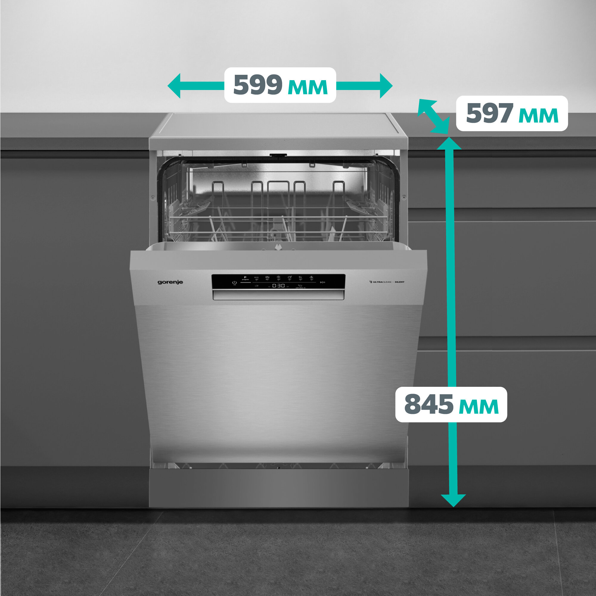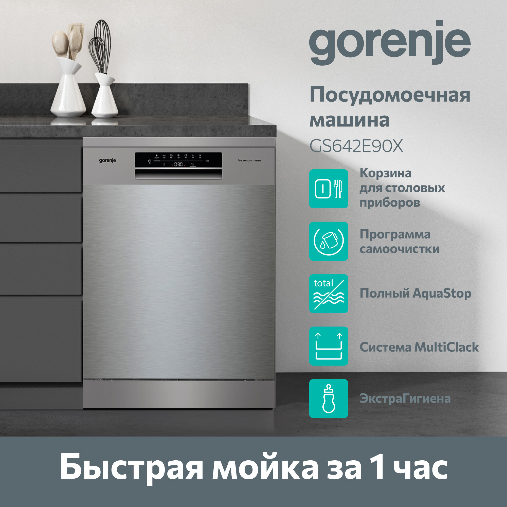 Посудомоечная машина Gorenje GS643E90X, полноразмерная, максимальная загрузка 16 комплектов, защита от протечек полная
