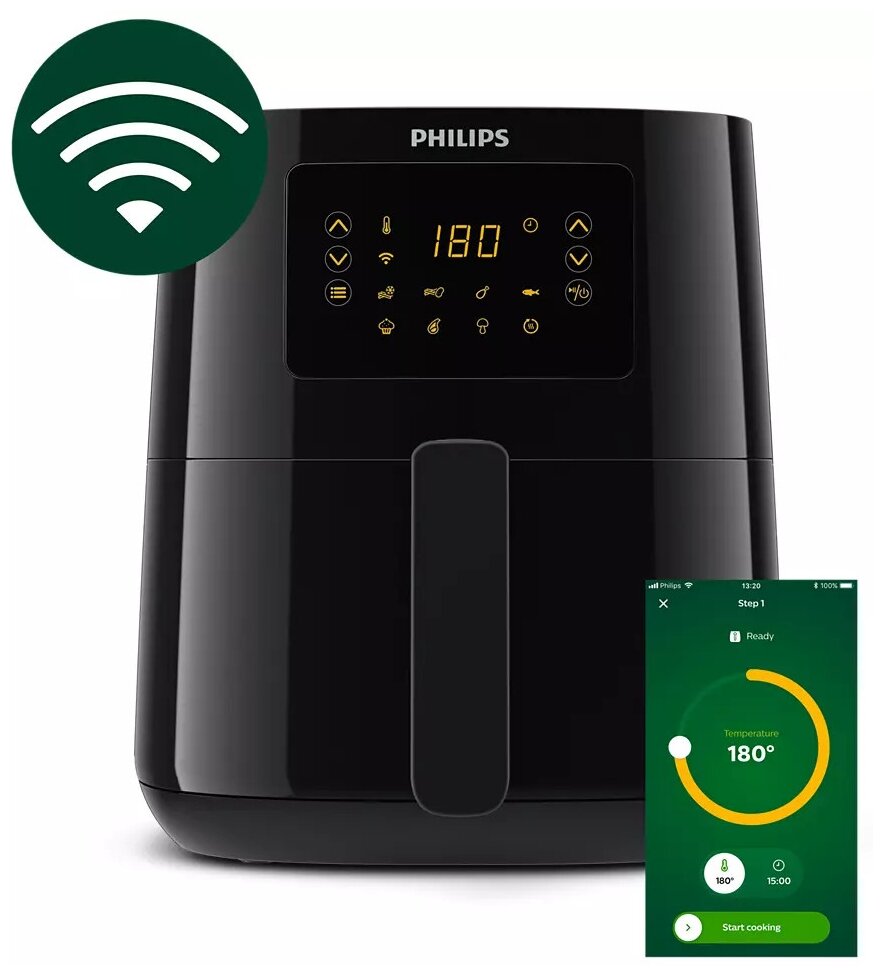 | Особенности | закрытая корзина на 800 гр; антипригарное покрытия; можно мыть в посудомоечной машине; индикатор температуры; функция автоматического отключения; программы: обжарка, гриль, запекание, приготовление из замороженного, повторный нагрев, размораживание, сохранение тепла, обезвоживание, тосты; поддержка Amazon Alexa |