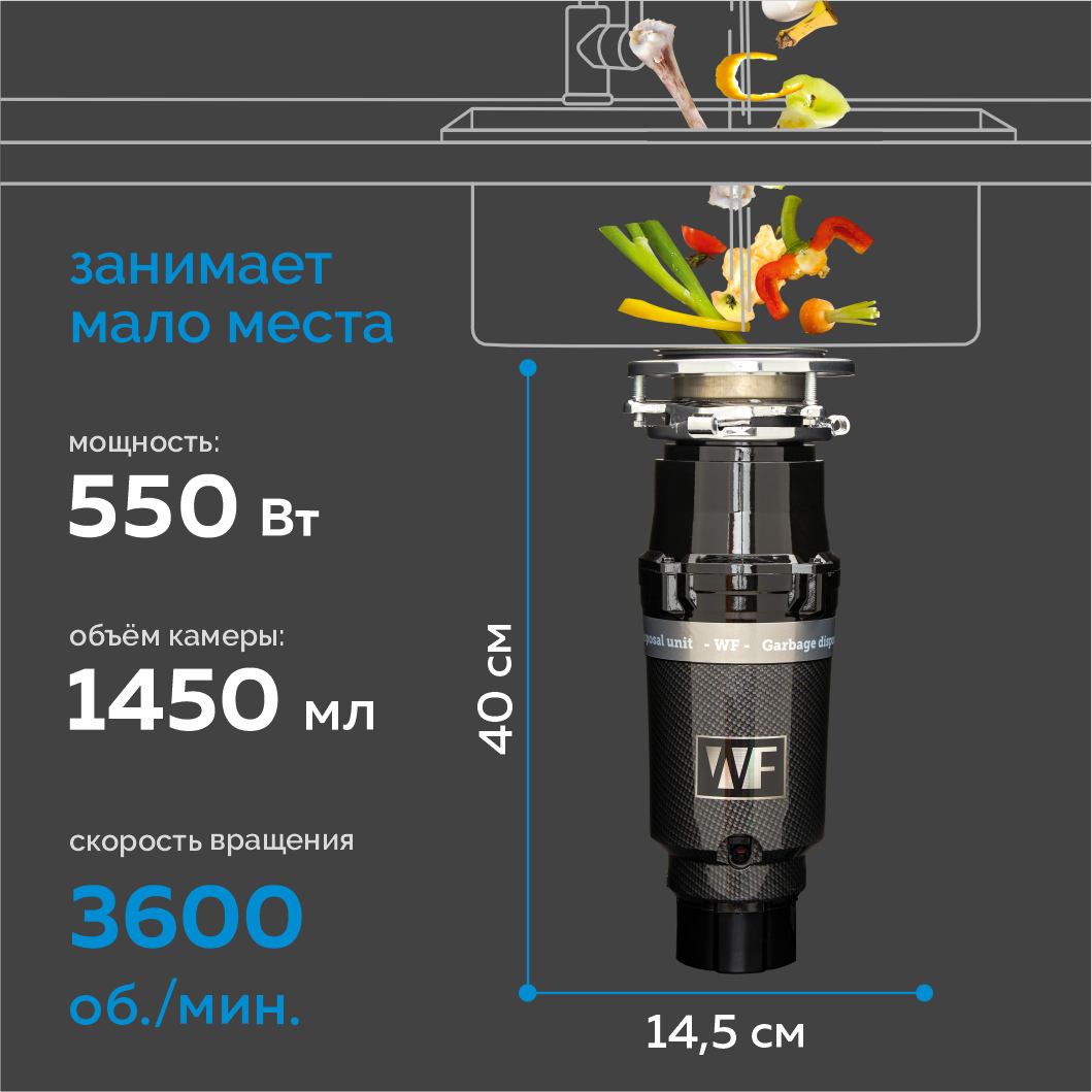 Измельчитель пищевых отходов WF F-52 Premium Carbon интересное: