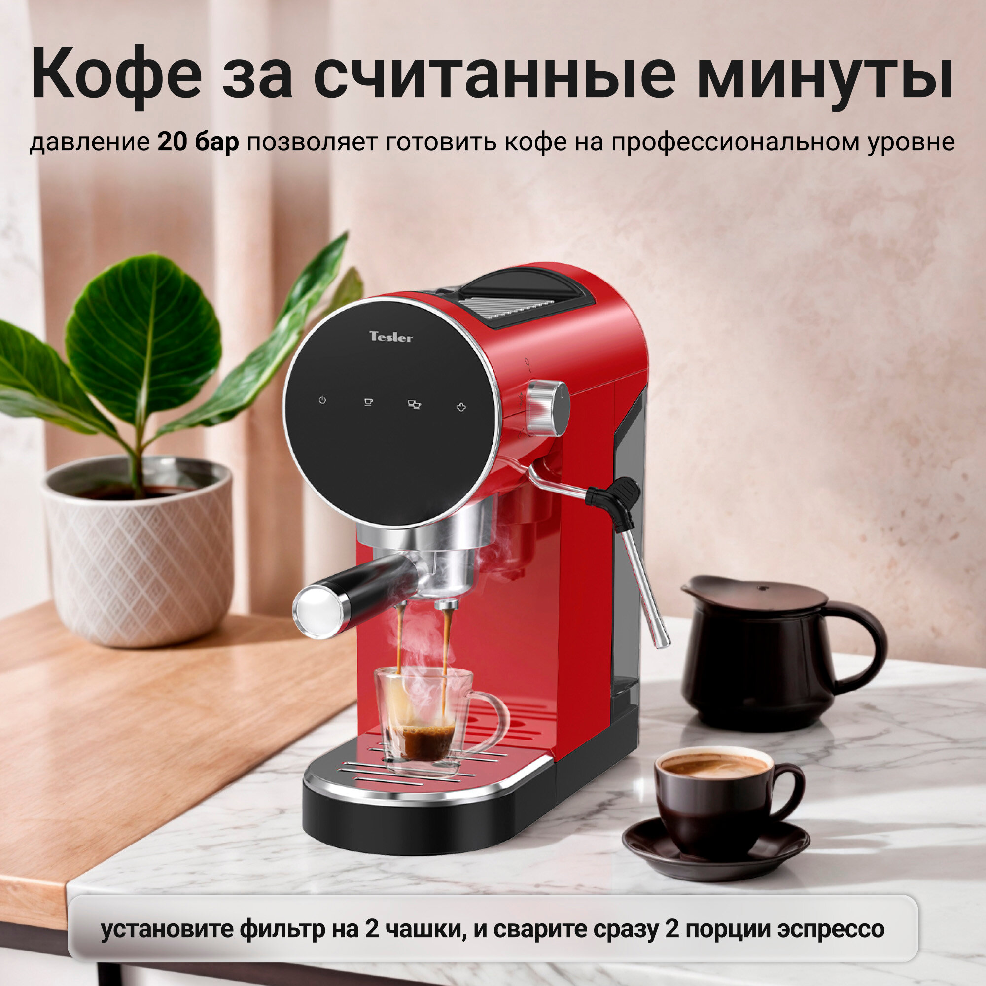 Кофеварка эспрессо TESLER ECM-260 RED интересное: