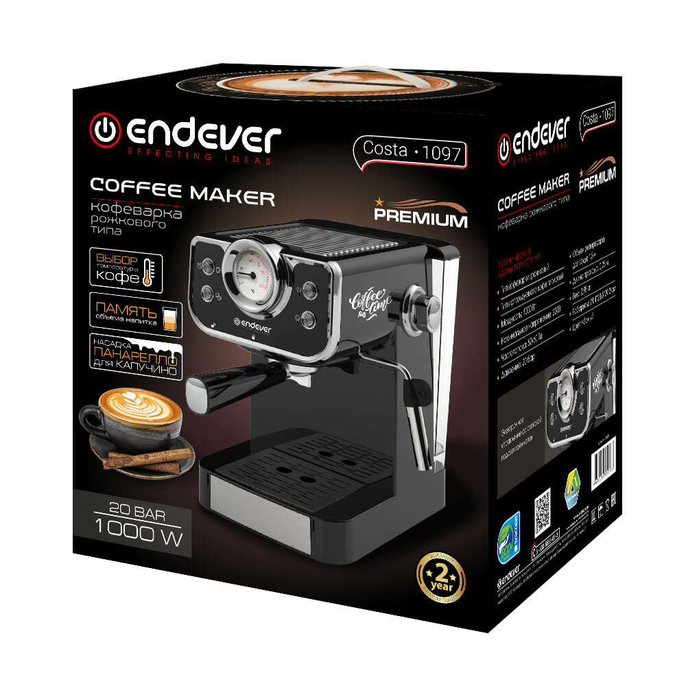 Кофеварка рожковая электрическая Endever Costa-1097 / 1000 Вт / 20 Бар / 1,5л