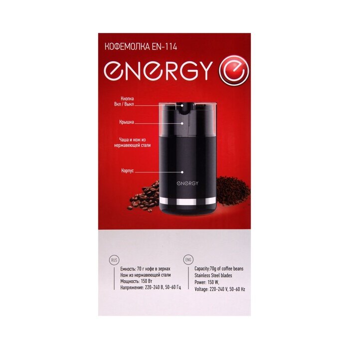 Кофемолка Energy EN-114, цвет: черный, 150 Вт интересное: